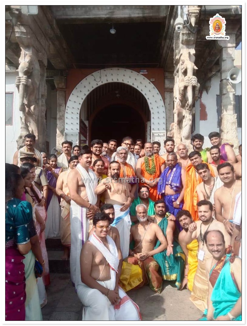 The Royal Family of Thiruvananthapuram and the temple authorities accorded a traditional and ceremonial welcome to H.H. Sri Swamiji and escorted Him for Sri Padmanabha Swamy Darshanam, during which H.H. Sri Swamiji had the blessed darshan of the Lord.