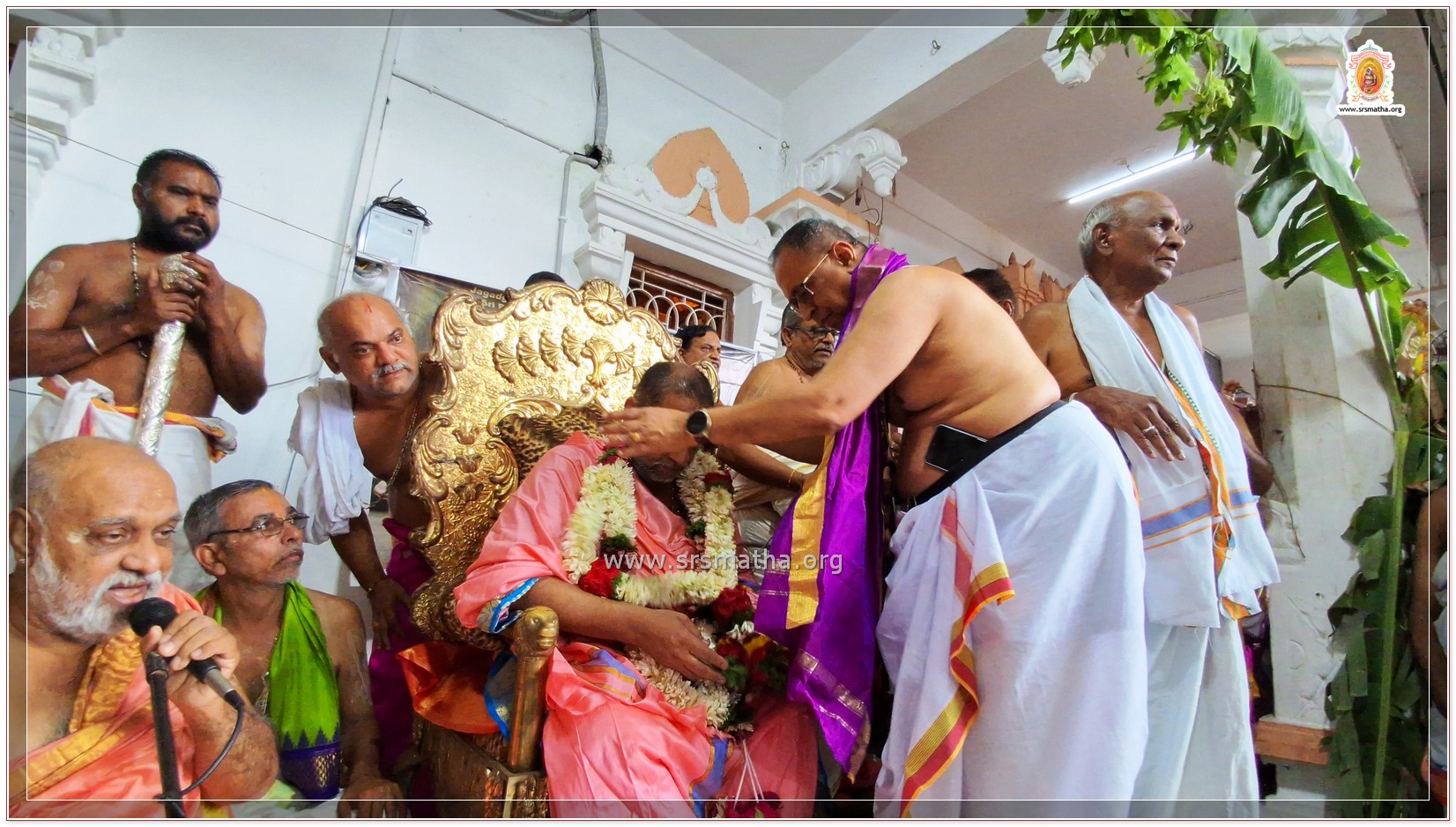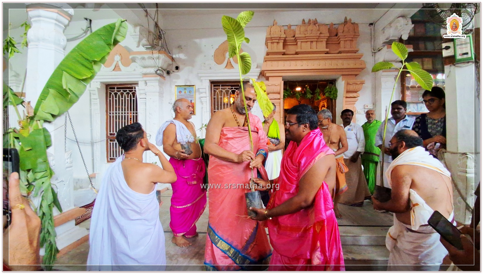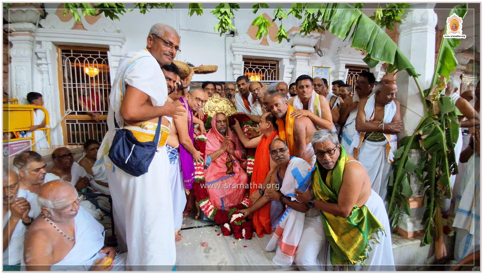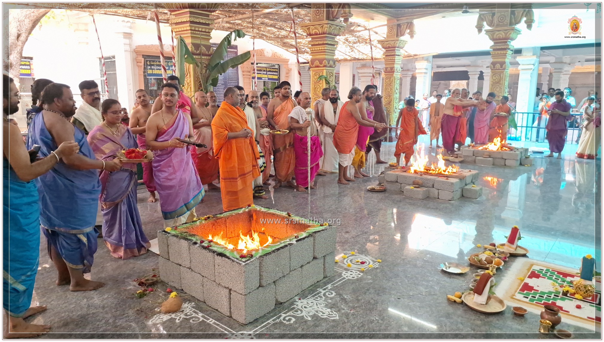 In the morning, Taila Abhyangana and Aarati were performed to H.H. Sri Swamiji by the students of SGS Vidyapeetha. The staff of Sri Mutt offered Guruvandana and Pushpavrushti in reverence.