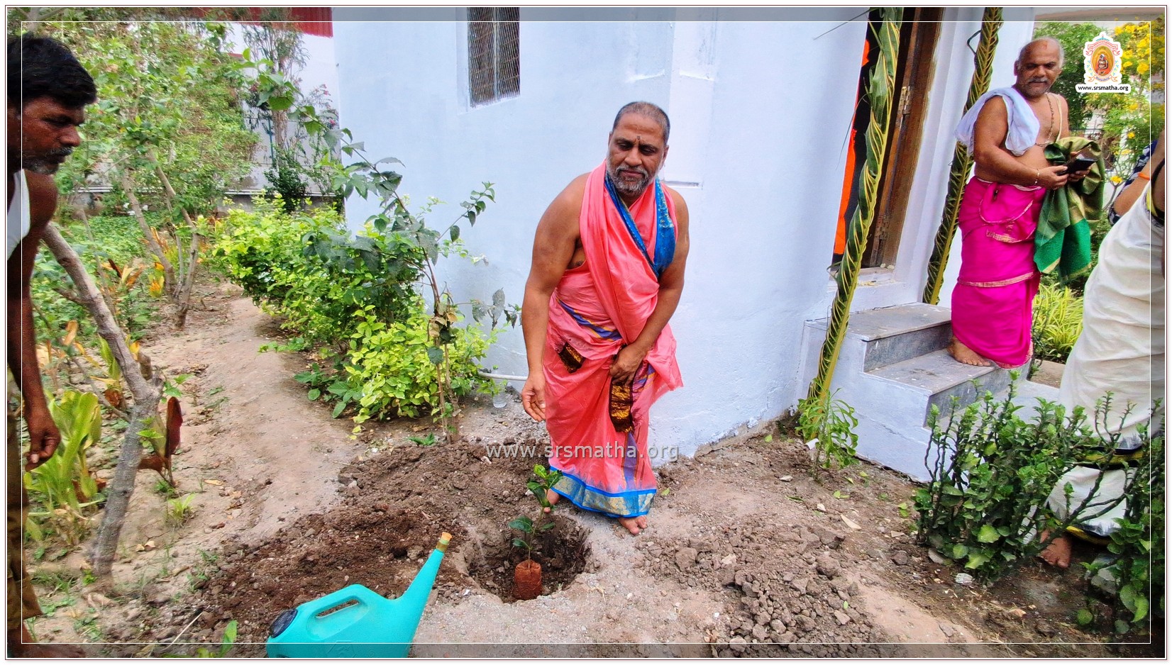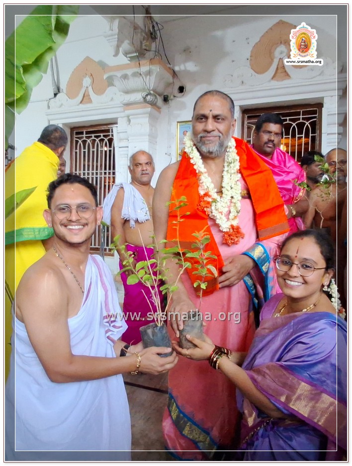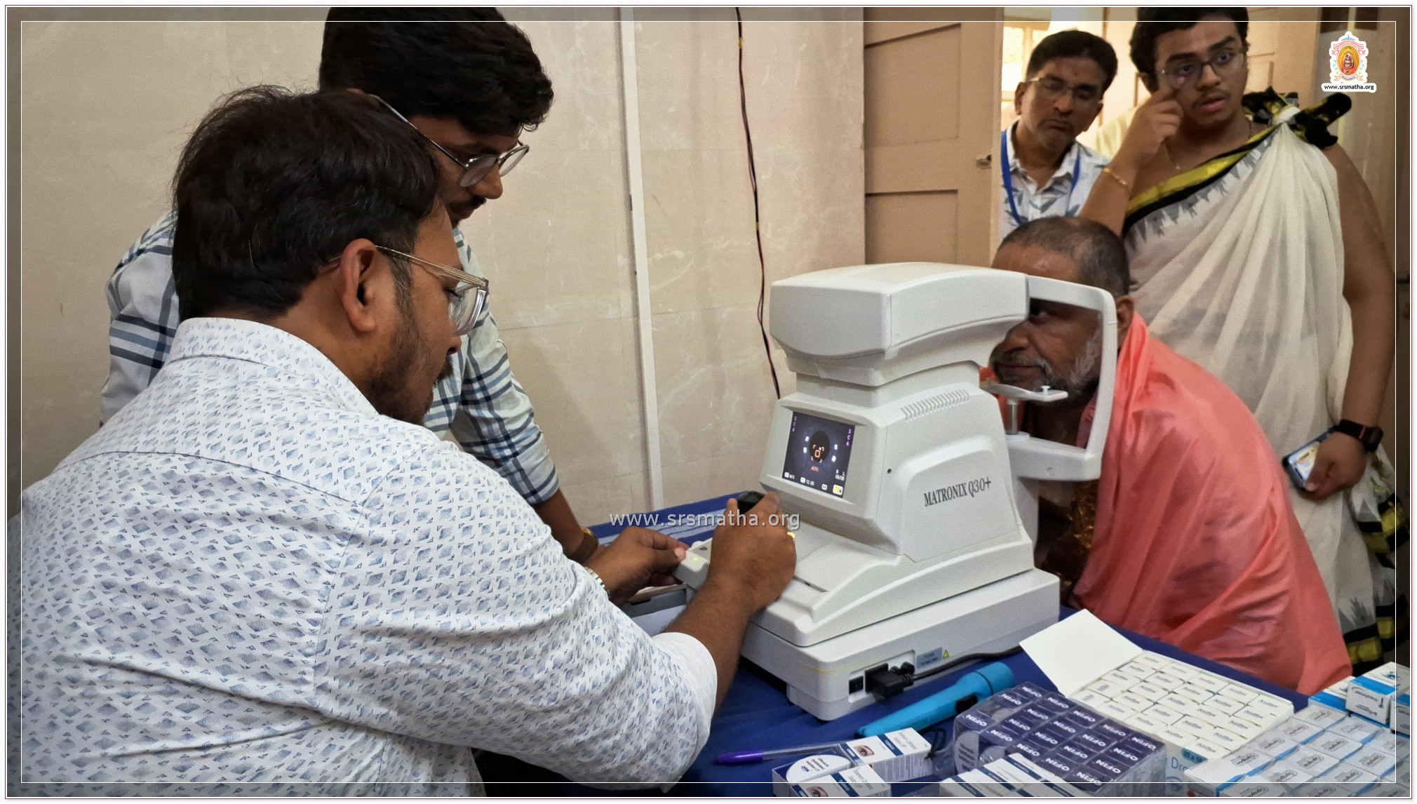 Later, H.H. Sri Swamiji visited Sri Sujayeendra Arogyashala to inaugurate a free eye camp organized on the occasion of the Vardhanti Utsava. This was followed by the distribution of Vruksha Prasada (saplings) to devotees.