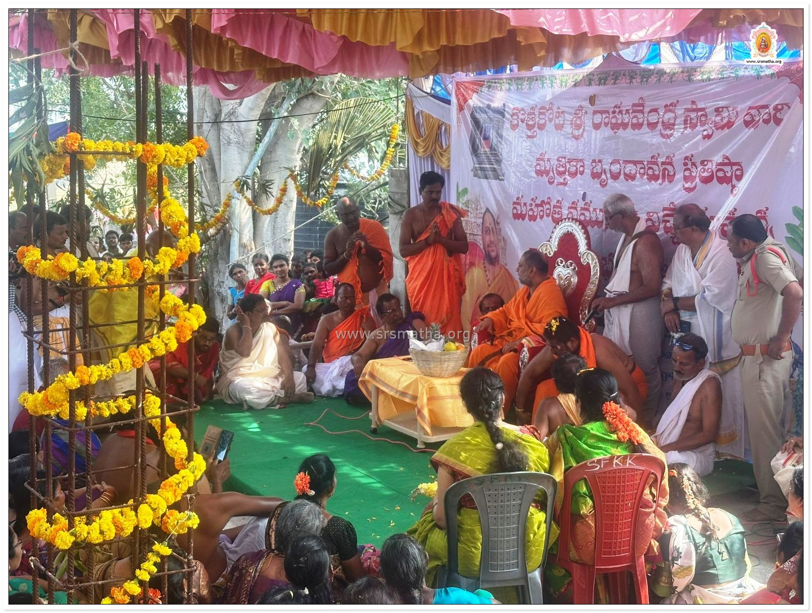His Holiness performed the Punahprathishthapana rituals of Sri Raghavendra Swamigalavara Mrittika Brindavana, which was previously installed by His Holiness Sri Sujayeendra Teertha Sreepadangalavaru in the year 1968. H.H. Sri Swamiji also reinstalled the idols of Sri Madhvacharya and Sri Jayateertha.