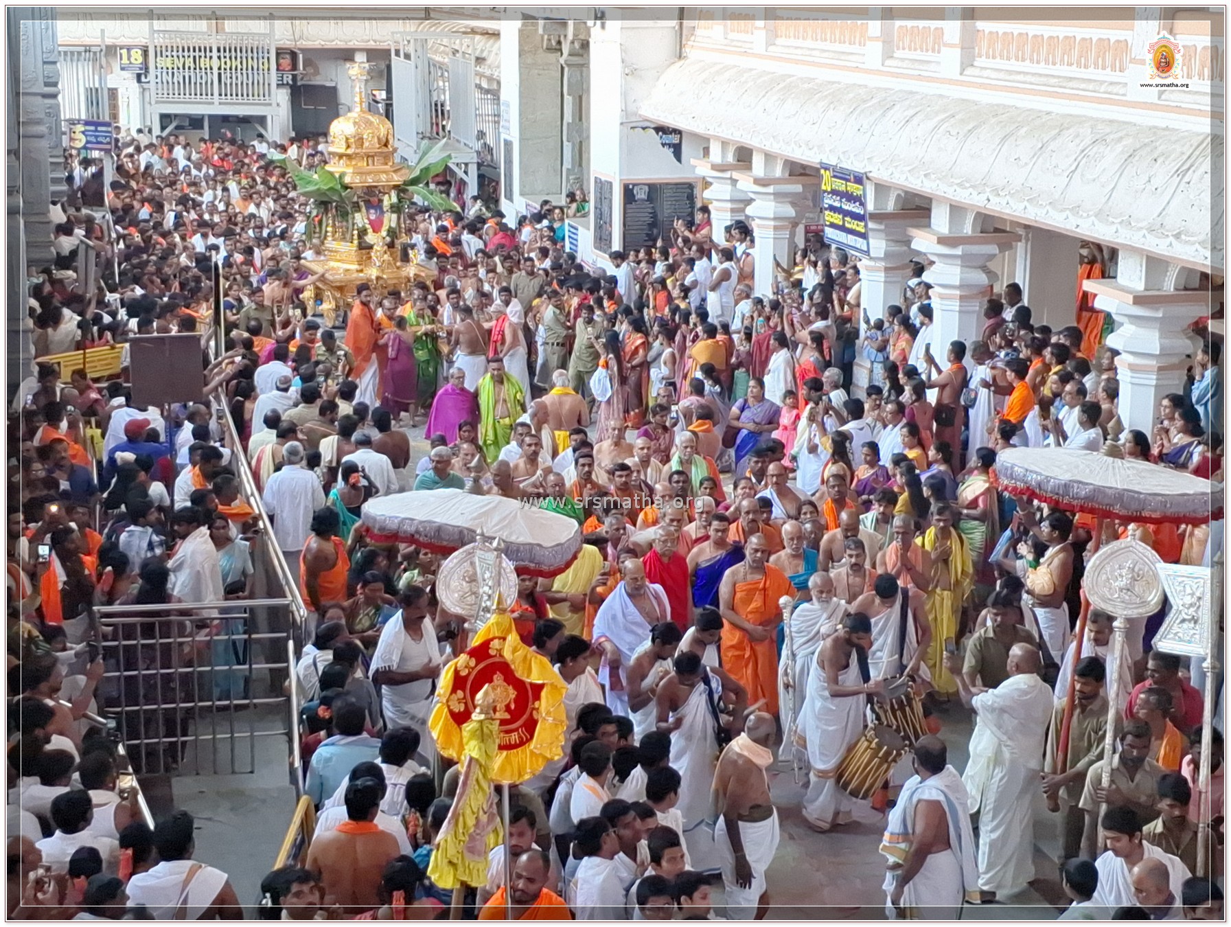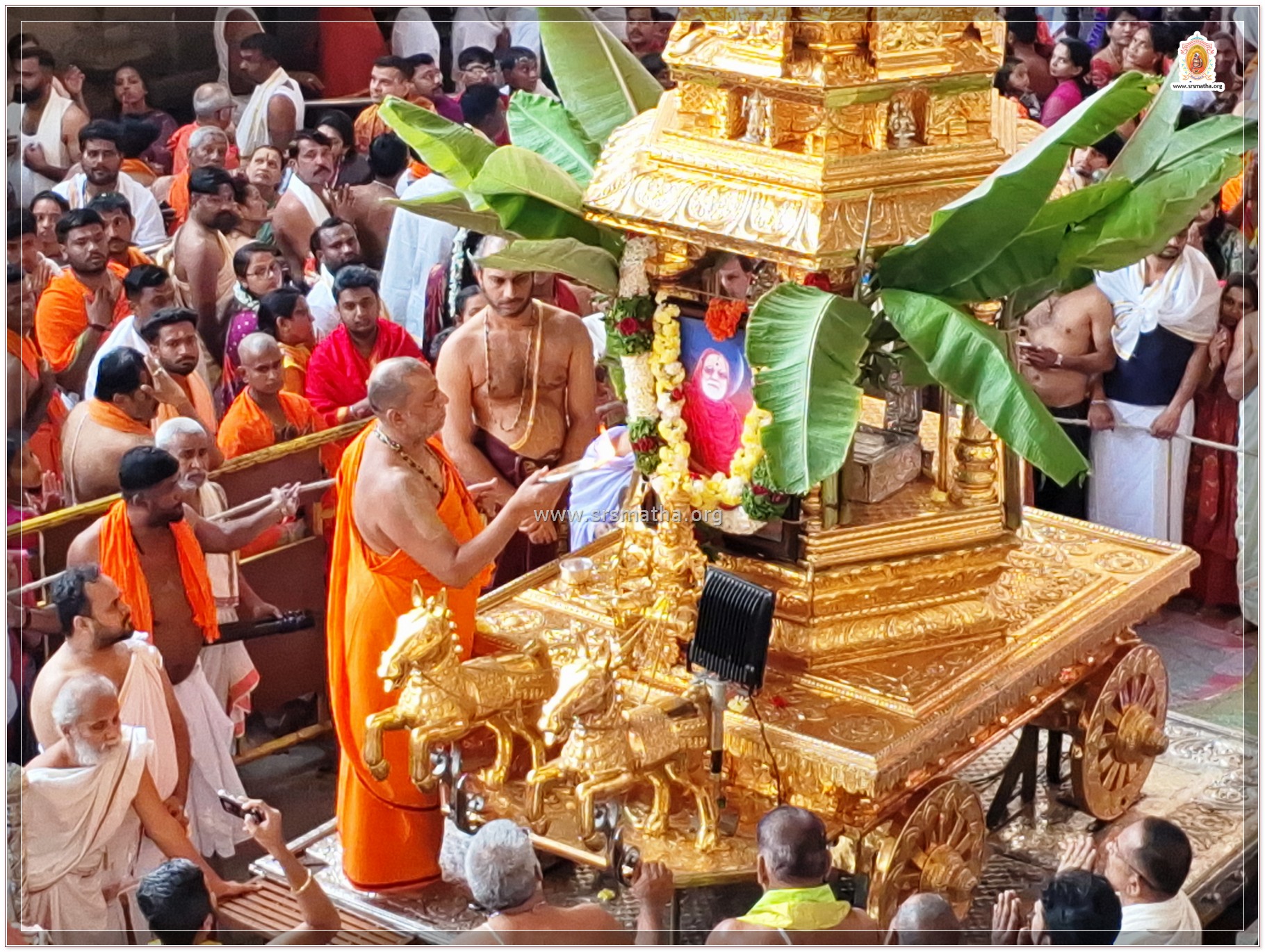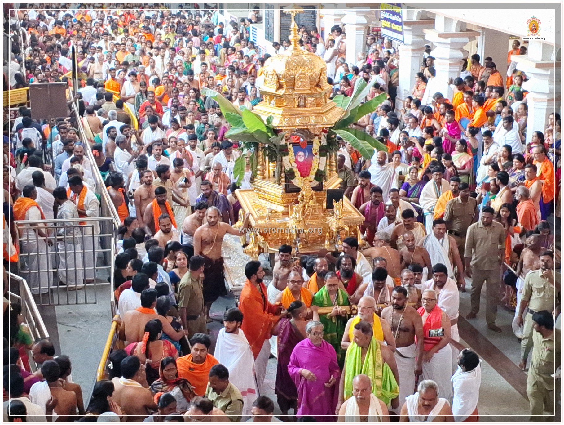 Sri Sujayeendra Teerthara Aradhana was held in a grand and devotional manner at Sri Mutt, Mantralayam, today. H.H. Sri Swamiji gave the auspicious start to Sri Sujayeendra Teerthara Rathotsava, in which a large number of devotees participated with great devotion.